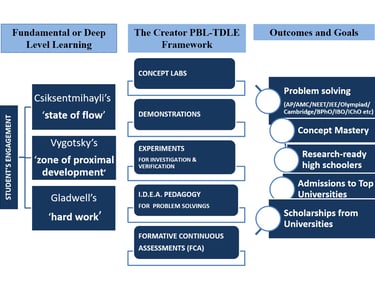 PBL-TDLE framework is a learning model where, for each subtopic, students master concepts by performing experiments and achieve mastery on their application by solving problems in concept labs (Modified classroom).