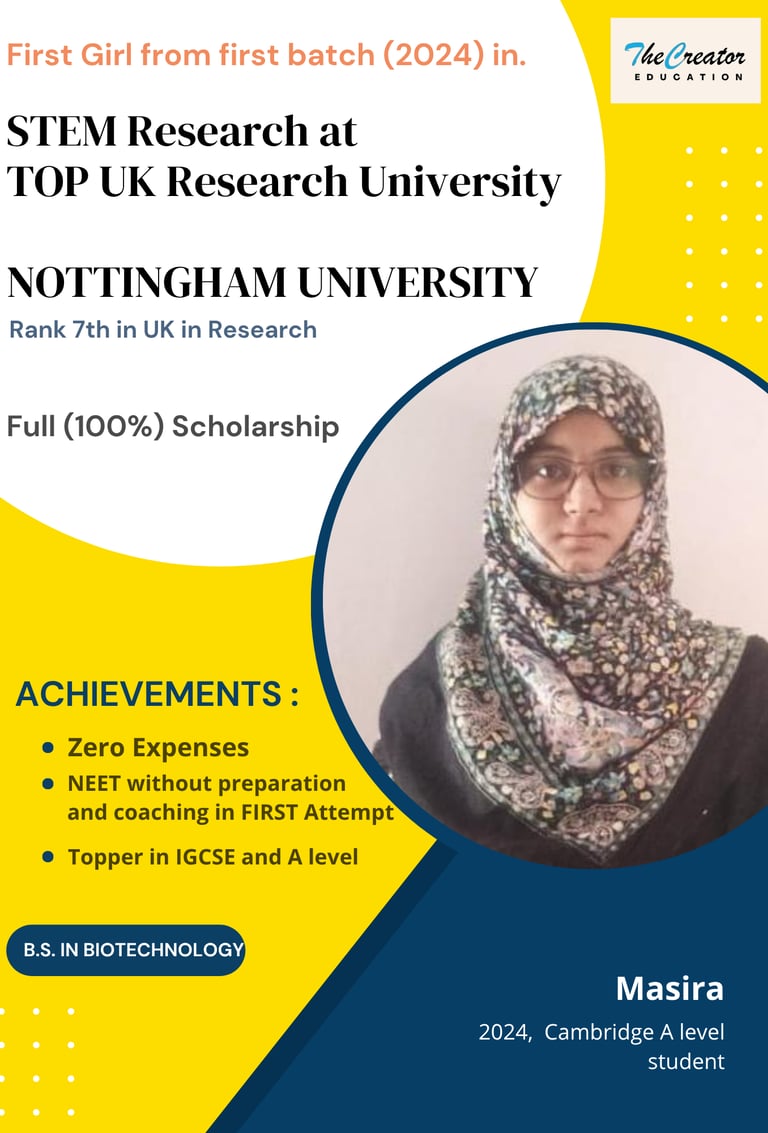 Studying B. S. (Biotechnology) at one of the top UK research University, Nottingham.