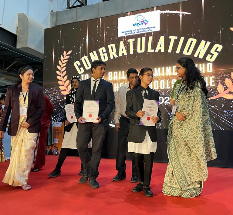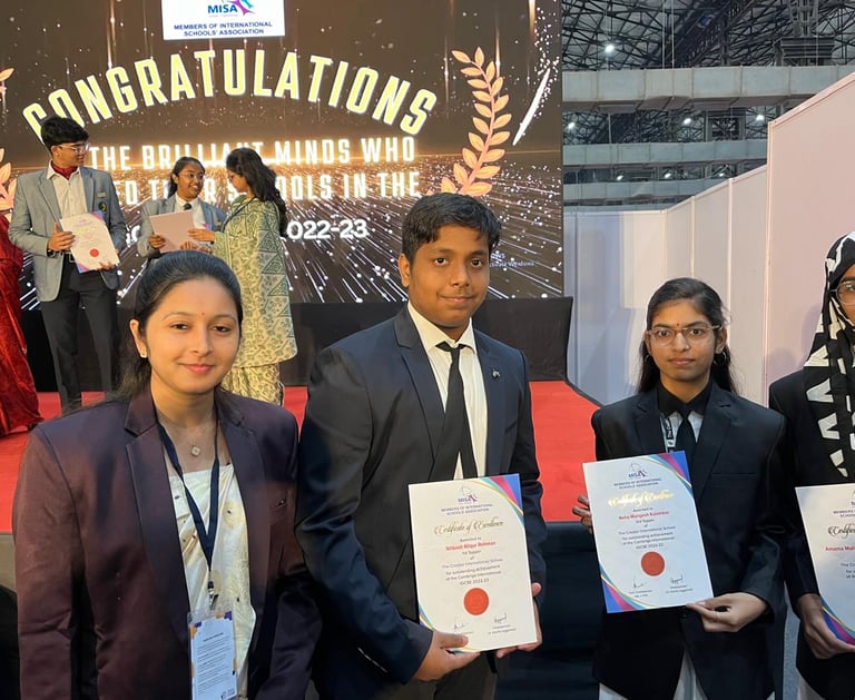Three students from our school ( Ikhbaat Rehman, Neha Kalamkar and Amama Mahin) have been awarded the Cambridge IGCSE (10th board) 2022-23 toppers award by the International School Association in Mumbai. This prestigious recognition is a testament to the hard work and dedication of our students. Their exceptional performance in the Cambridge IGCSE exams has set them apart from their peers and highlights their academic excellence. We are immensely proud of their achievements and commend them for their relentless pursuit of knowledge. This recognition not only reflects their individual success but also showcases the high standard of education and teaching at our school. We congratulate these outstanding students and wish them continued success in their future endeavors.