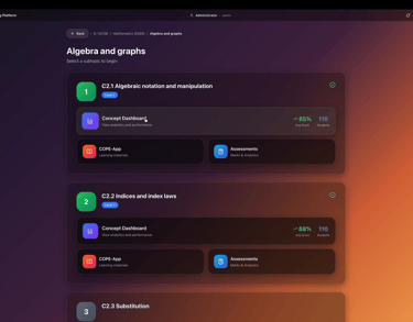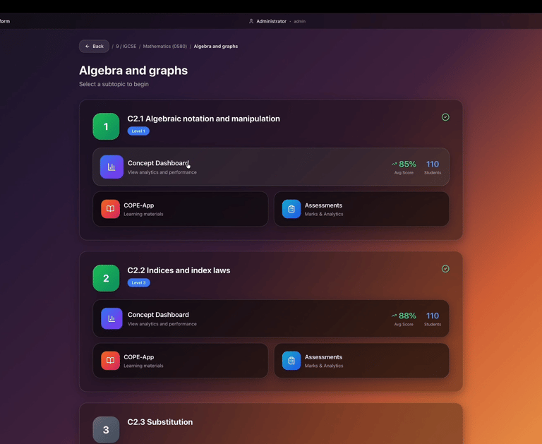 CoPE-App systematically maps every subtopic of the curriculum into a structured set of core concepts that must be mastered before problem solving. These concepts are primarily derived from the curriculum and learning objectives prescribed by the respective boards and are aligned with international standards such as Cambridge, Olympiad, AP, and other research-oriented curricula, ensuring deep conceptual clarity rather than superficial coverage.
