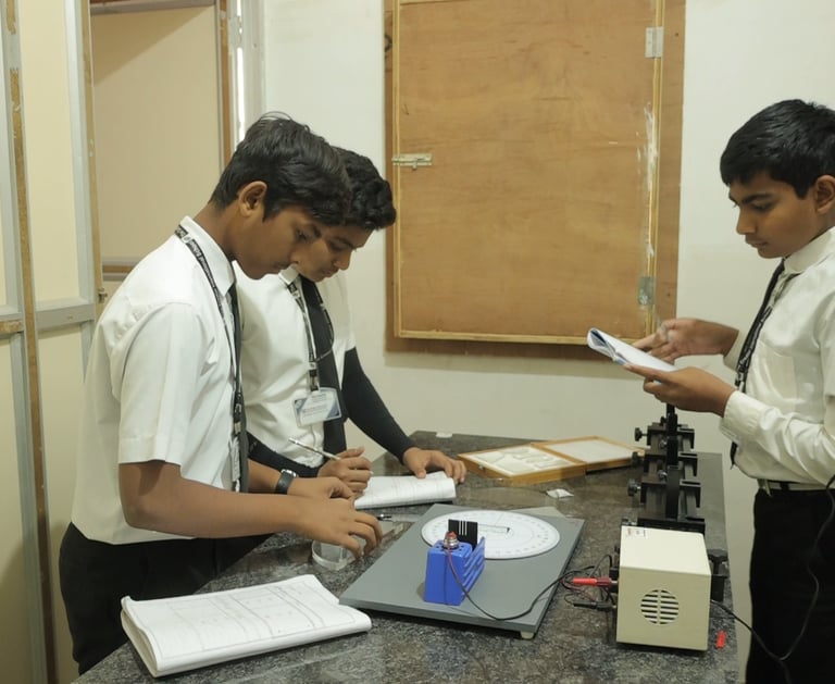 Every student performs these experiments as an integral part of daily teaching and learning, ensuring active engagement and individual concept investigation rather than passive observation. Each experiment is structured for investigation and verification of concepts, where students conduct precise measurements, record and tabulate data, plot graphs, perform calculations and error analysis, interpret results, and draw logical conclusions. This systematic experimental participation guarantees that every concept is scientifically developed, tested, and mastered, forming a strong foundation for application and higher-order problem solving within the PBL-TDLE framework..