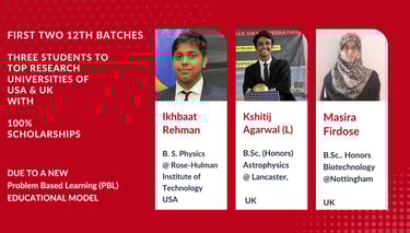 After securing admission to prestigious research universities, our students are expected to actively engage in advanced research and are already demonstrating this trajectory by working towards original knowledge creation, research publications, and innovative patents that address real-world challenges. During their undergraduate studies, they initiate research projects in world-class laboratories and progressively develop into competent researchers and scientists with strong conceptual foundations, analytical skills, and scientific discipline.