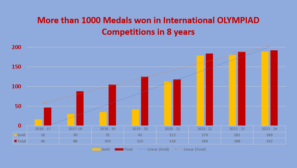 More than 1000 Medals (800 Gold) in the world's biggest Olympiad Exams in last 8 years.