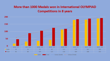 More than 1500 Medals (1300 Gold) in the world's biggest Olympiad Exams in last 10 years.