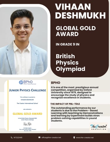 Our students’ exceptional performance in the British Physics Olympiad (JPC) and the Global Gold Award achievement in Grade 9 reflect the strength of our research-driven PBL-TDLE framework and Concept Lab approach. As highlighted by the BPhO organisers, the fact that all participating students received global awards demonstrates consistently high academic standards and a culture of deep conceptual learning.